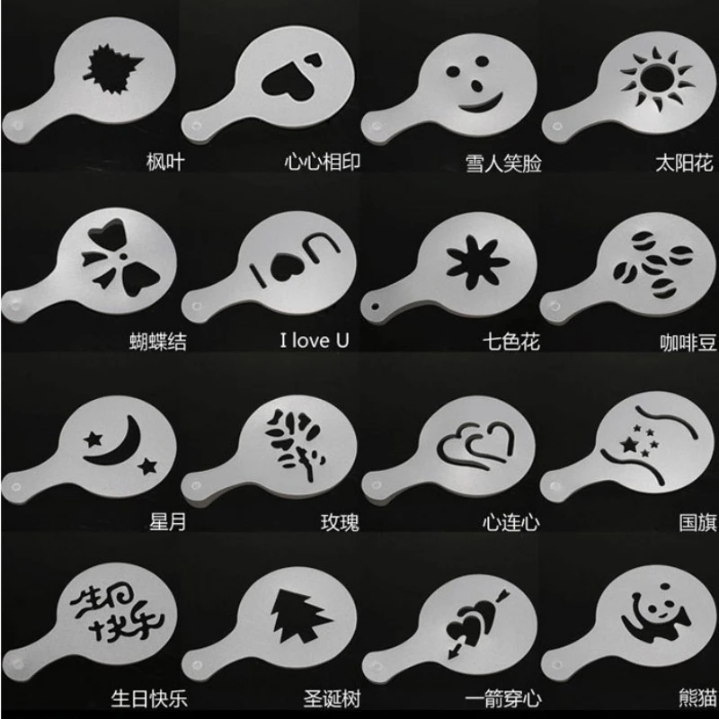 قوالب كابتشينو من الفولاذ المقاوم للصدأ مع غطاء شفاف. تتميز بمقاومة الأكسدة وتصميم متعدد الاستخدامات للطباعة على قهوة الكابتشينو وإضافة أنماط جميلة. احصلي عليها من متجر microcoffee