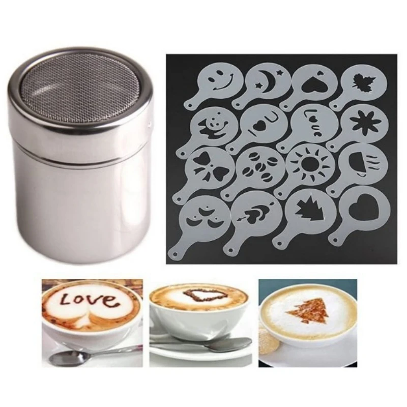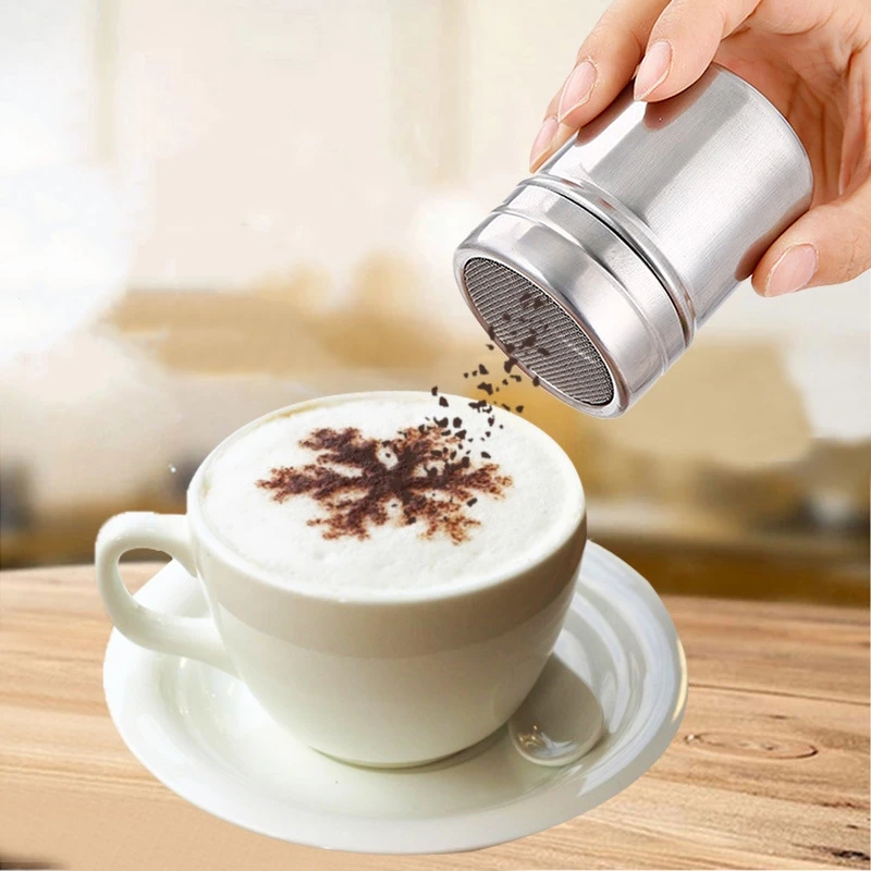 - قالب كابتشينو مناسبة لرش مسحوق الكاكاو، القرفة، الماتشا، ومساحيق الشوكولاتة بشكل متساوٍ على القهوة